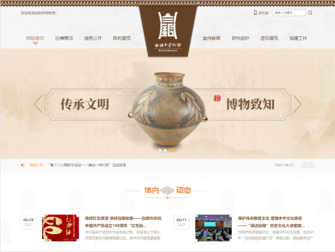網(wǎng)站界面設(shè)計彰顯文化底蘊(yùn),以米黃色為主色調(diào),突出沉郁厚重的歷史氣息,符合博物館定位。從觀眾的瀏覽習(xí)慣和需求出發(fā),重新設(shè)計網(wǎng)站架構(gòu),梳理各版塊的邏輯關(guān)系,進(jìn)一步清晰和合理化了欄目設(shè)置,頁面布局簡潔明快,瀏覽更便捷。