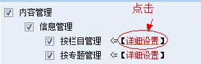 將角色賦予“信息管理”權(quán)限后,就可以設(shè)置上圖中“此角色”在各個欄目節(jié)點(diǎn)中的相關(guān)權(quán)限了,包括查看、錄入、審核、信息管理權(quán)限。