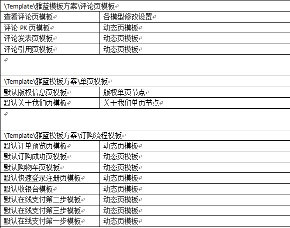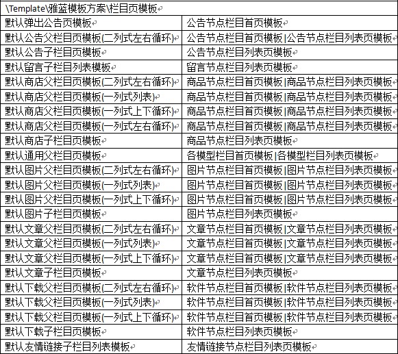 附默認(rèn)雅藍(lán)模板方案中各模板的使用說明: