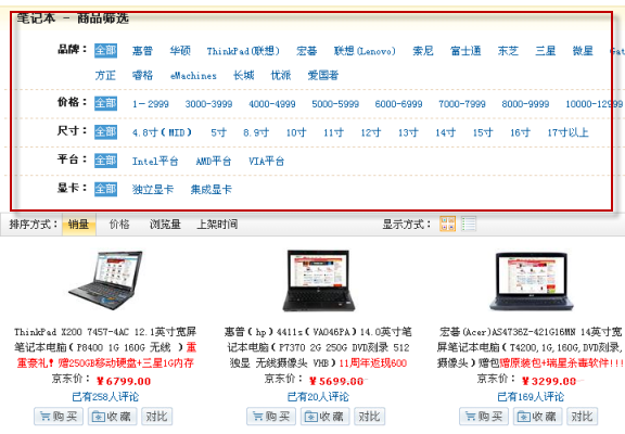 什么是商品篩選?也許有的用戶對(duì)這個(gè)詞會(huì)有點(diǎn)陌生。這個(gè)詞,解釋起來(lái)可能有點(diǎn)費(fèi)勁,不過(guò)沒(méi)關(guān)系,大家只要仔細(xì)看下以下兩幅圖估計(jì)就會(huì)恍然大悟了:噢,原來(lái)就是這個(gè)功能啊!